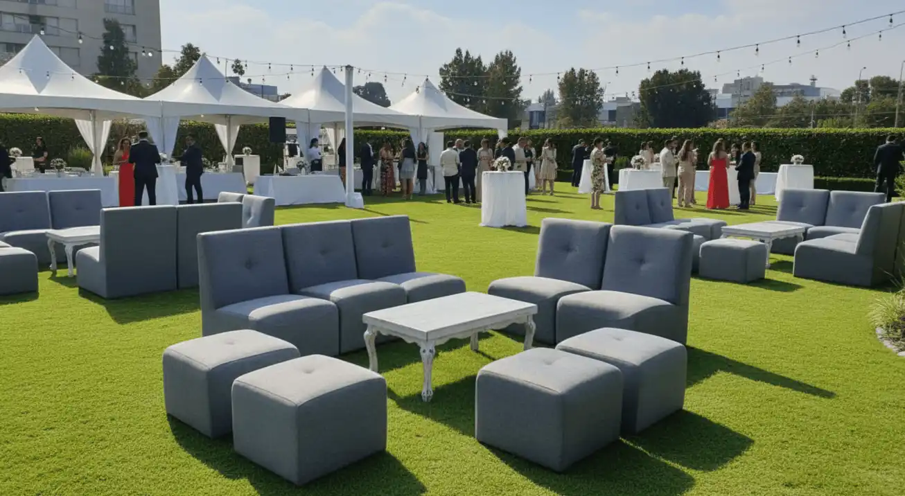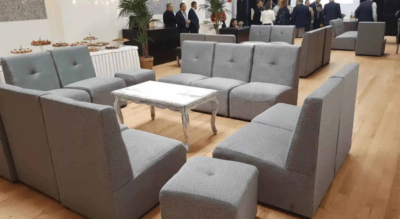 Sala Lounge Gris para Eventos Corporativos: Versatilidad que Se Adapta a tu Marca